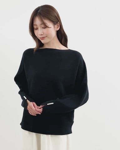 ・横に広いボートネックで、デコルテラインを美しく演出。