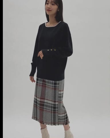 【カシミヤタッチ】袖ボタンクルーネックニット
