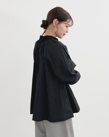 首元にはギャザーが寄せられ、程よく広がるシルエットに。