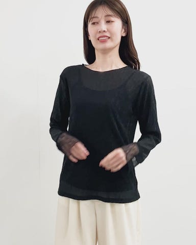 ・程よい透け感が軽やかで、重たく見せず大人らしい抜け感のある印象に。