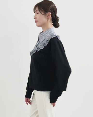 ・スウェットとストライプシャツのドッキングデザインで、コーディネートに悩まず一枚でこなれたレイヤードスタイルが完成するプルオーバー。