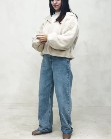 ラビットファーライクな柔らかい肌触りが特徴的なアウターです。