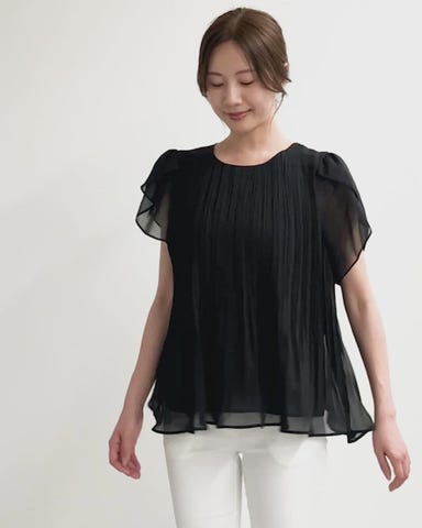 ふわっと優しく広がる女性らしいシフォンブラウス。