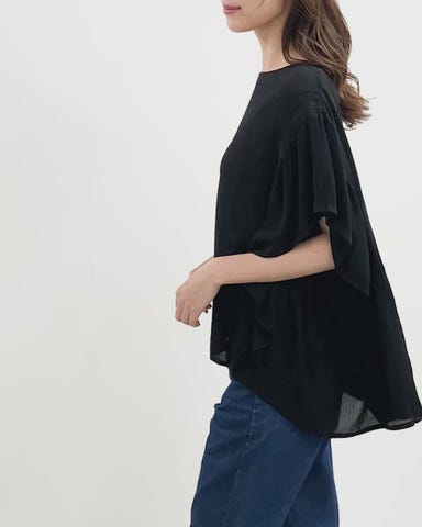程良くボリューミーな袖フリルで、さりげなく気になる二の腕をカバー◎
