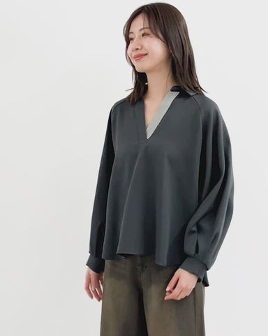 パウダーストレッチ合わせネックブラウス