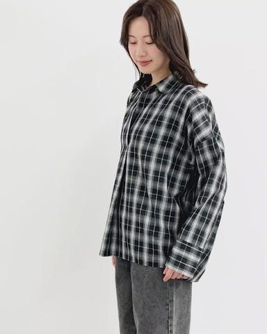 オーバーサイズチェック柄スキッパーシャツ