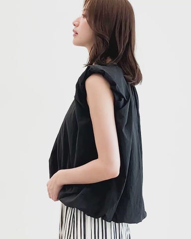 ギャザーを寄せたノースリーブデザインで涼しげなディテール。