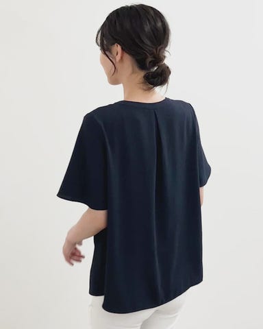 袖口がややフレアになっており、二の腕をさりげなくカバーしてくれるのが嬉しいポイント。