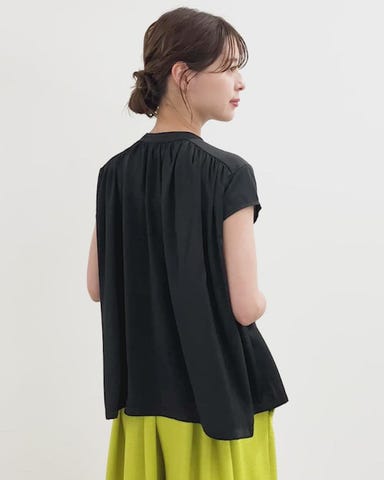 上品な光沢感ととろみ感のある、柔らかなサテン素材を使用したブラウス。