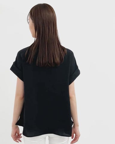 袖を折り返しデザインにすることで二の腕を華奢に見せてくれる効果も。