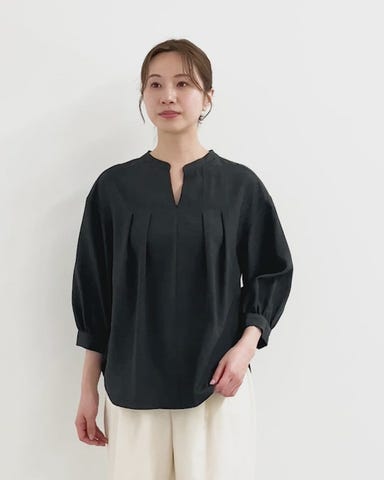 ・ナチュラルな表面感と落ち感が魅力のタンブラーブッチャーブラウス。