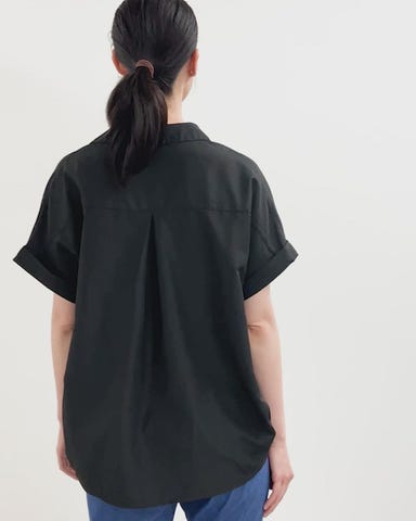 スキッパー襟やまくり上げたようなデザインの袖、ゆったりとしたサイジングがコーデに抜け感を与え、ナチュラルで大人可愛い着こなしが叶います。