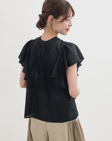 さらっとした肌触りで涼しげな印象。程よい透け感で清涼感漂うブラウス。