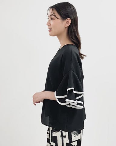 すっきりめの身幅に対して、ややボリュームのある袖が引き立つデザインです。