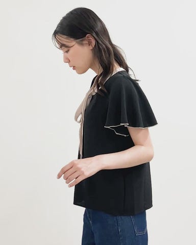 袖はフレアになっており、気になる二の腕ラインをさりげなくカバーします。
