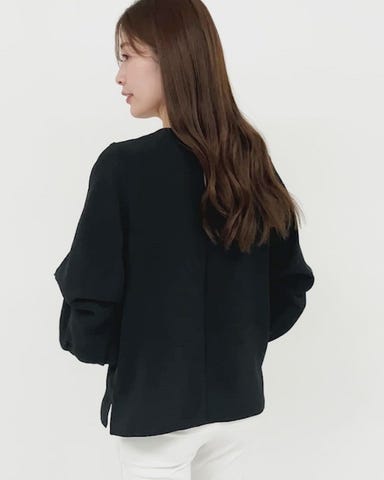 ・袖口は内側のボタンで長さ調整が可能。季節やその日の気分に合わせて、ボリューム袖のニュアンスを変えて楽しめます。