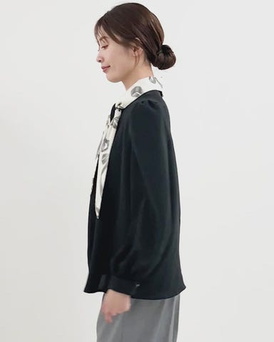 ・スッキリ見えを叶えるバンドカラーデザイン: スカーフを通す襟元はバンドカラーにすることで、首周りがもたつかず、スッキリとした清潔感のある着こなしを叶えます。
