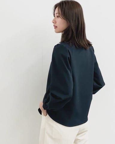 ・フェミニンなディテール:袖口や肩まわりにギャザーを寄せ、ふんわりと女性らしい柔らかなシルエットに。手首を華奢に見せてくれる袖コンシャスなデザインです。