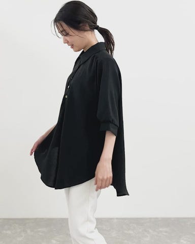 身体のラインを拾いすぎず、きちんと感もキープしてくれるゆったりサイズ。