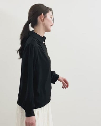 落ち感のあるとろみ素材が大人可愛いを叶えるブラウス。