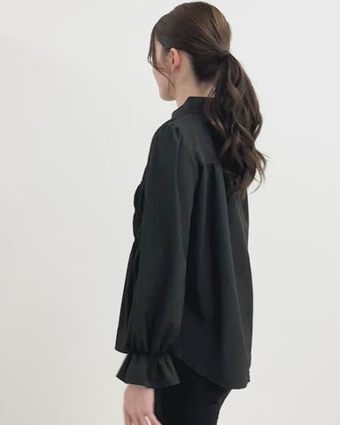 フロントのシャーリングが華やかな印象を与えるブラウス。