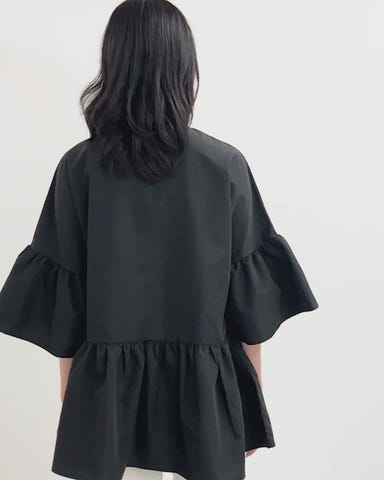 アシンメトリーなラッフルデザインがコーデを華やかにアップデート。