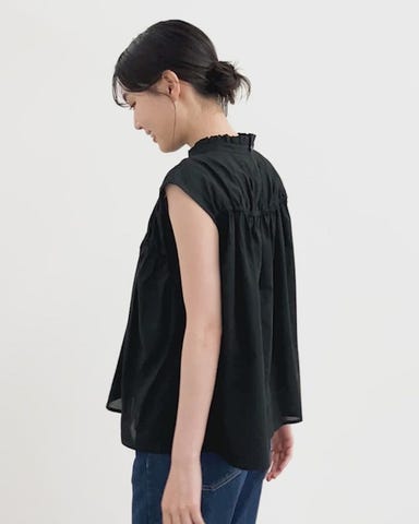 シャーリングデザインで1枚で着映えるノースリーブブラウス。