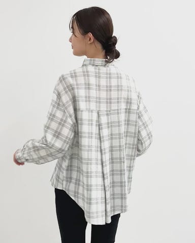 ・カジュアルなチェック柄に2WAYデザインや袖口シャーリングなど女性らしいポイントをプラスしたシャツ。