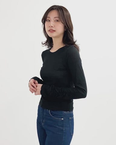 長めの袖にはシャーリングが施されておりクシュっとさせると可愛いです。