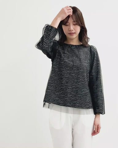 ツイードと柔らかいチュールが重ねられたプルオーバー。