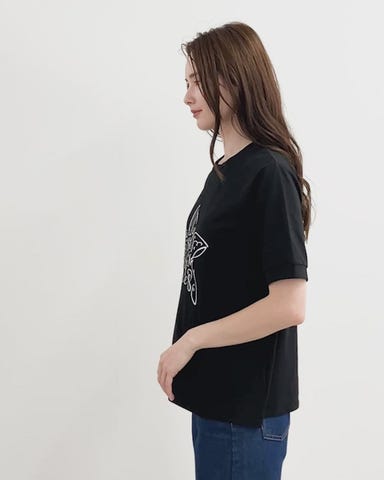 シンプルなボトムに合わせるとデザインが映えておすすめ◎