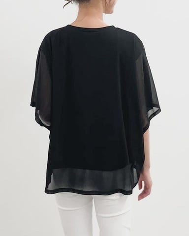 ノースリーブにシアー素材を重ねているので身体のラインをカバーしながら涼しく着用頂けます。