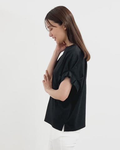 広めの袖口にタックが施されておりこなれ感を演出します。