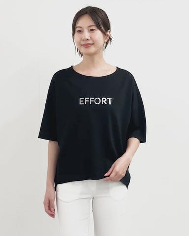 箔プリントと立体的な刺繍のロゴが上品な大人のロゴTシャツ。