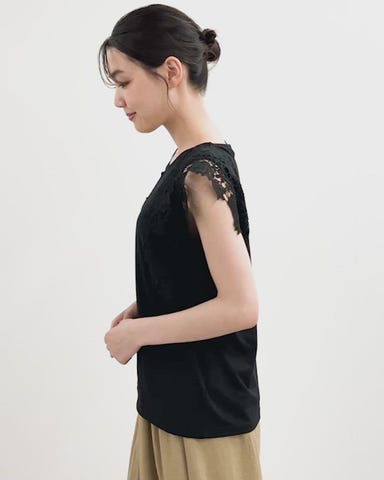 袖のようなレースは華やかさを演出しながら、夏に気になる二の腕をカバー。
