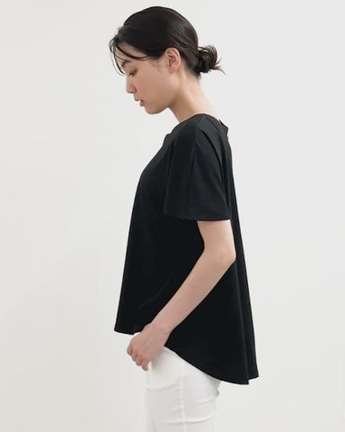 楽な着心地でスッキリ見えが叶うスキッパートップス。