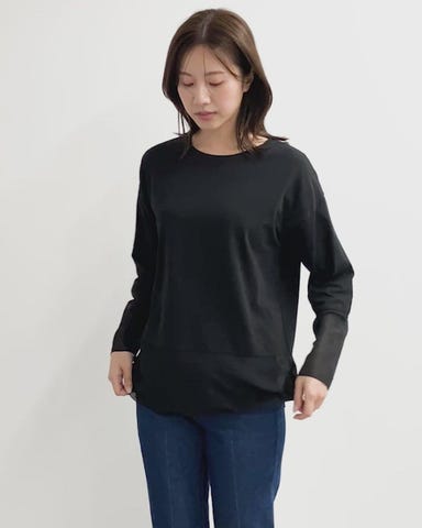 ・一枚で旬のレイヤード風スタイルが楽しめる、異素材切替トップス。