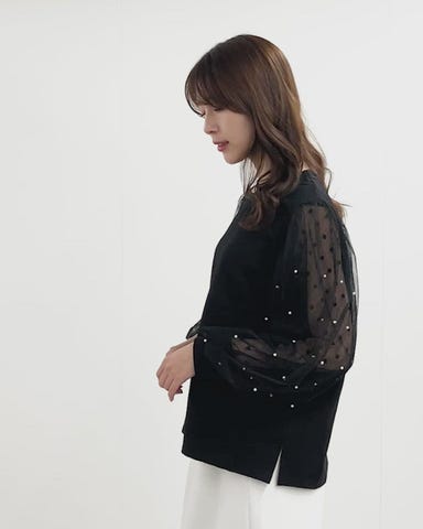 細身のボトム合わせは袖のボリュームとのバランスが良くおすすめです◎