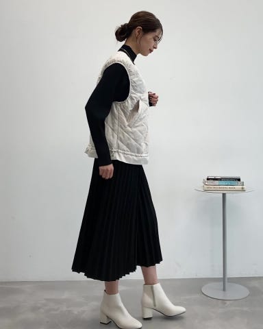 ノーカラーベストなので、タートルネックなどは首元を覗かせるのも◎