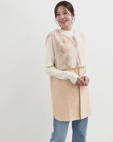 ・下身頃はモコモコとした表情が特徴のボア調ニット素材で、温かみをプラス。