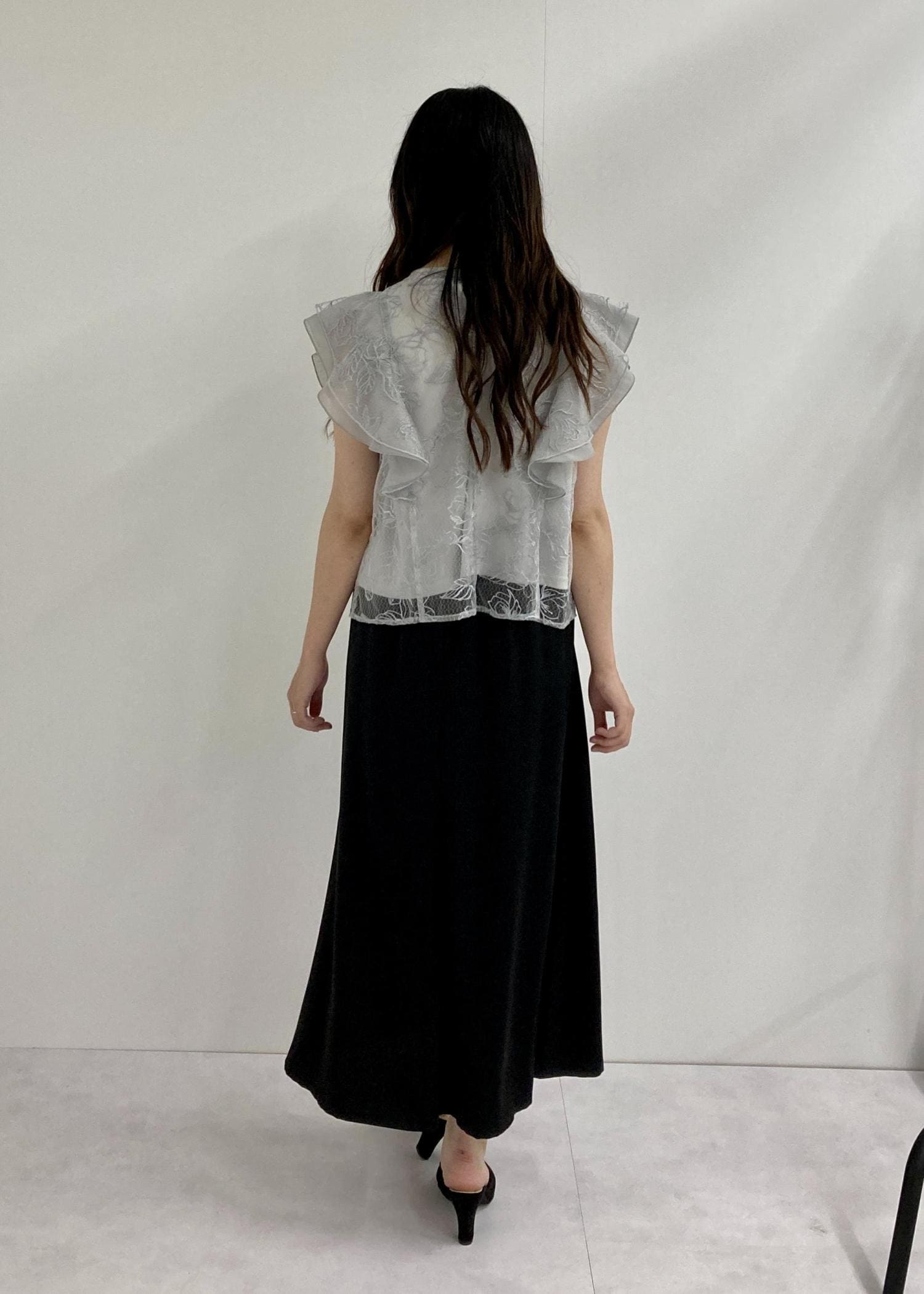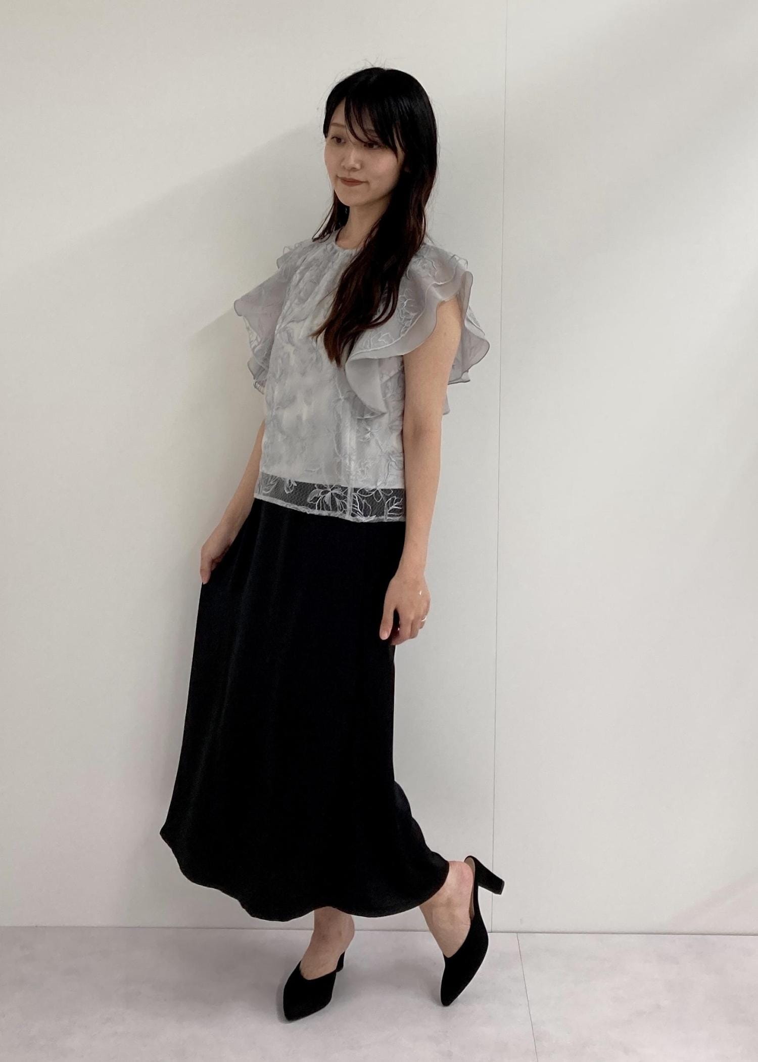 フリルが肩周りの張りをカバーしてくれるのも嬉しいポイント◎