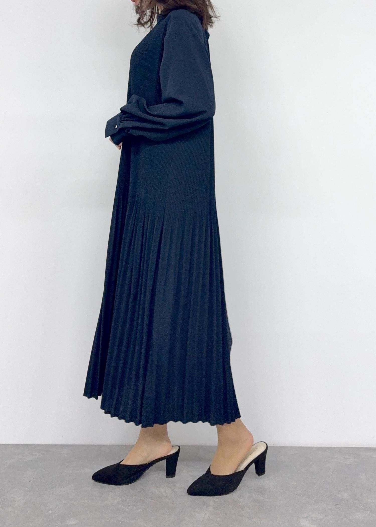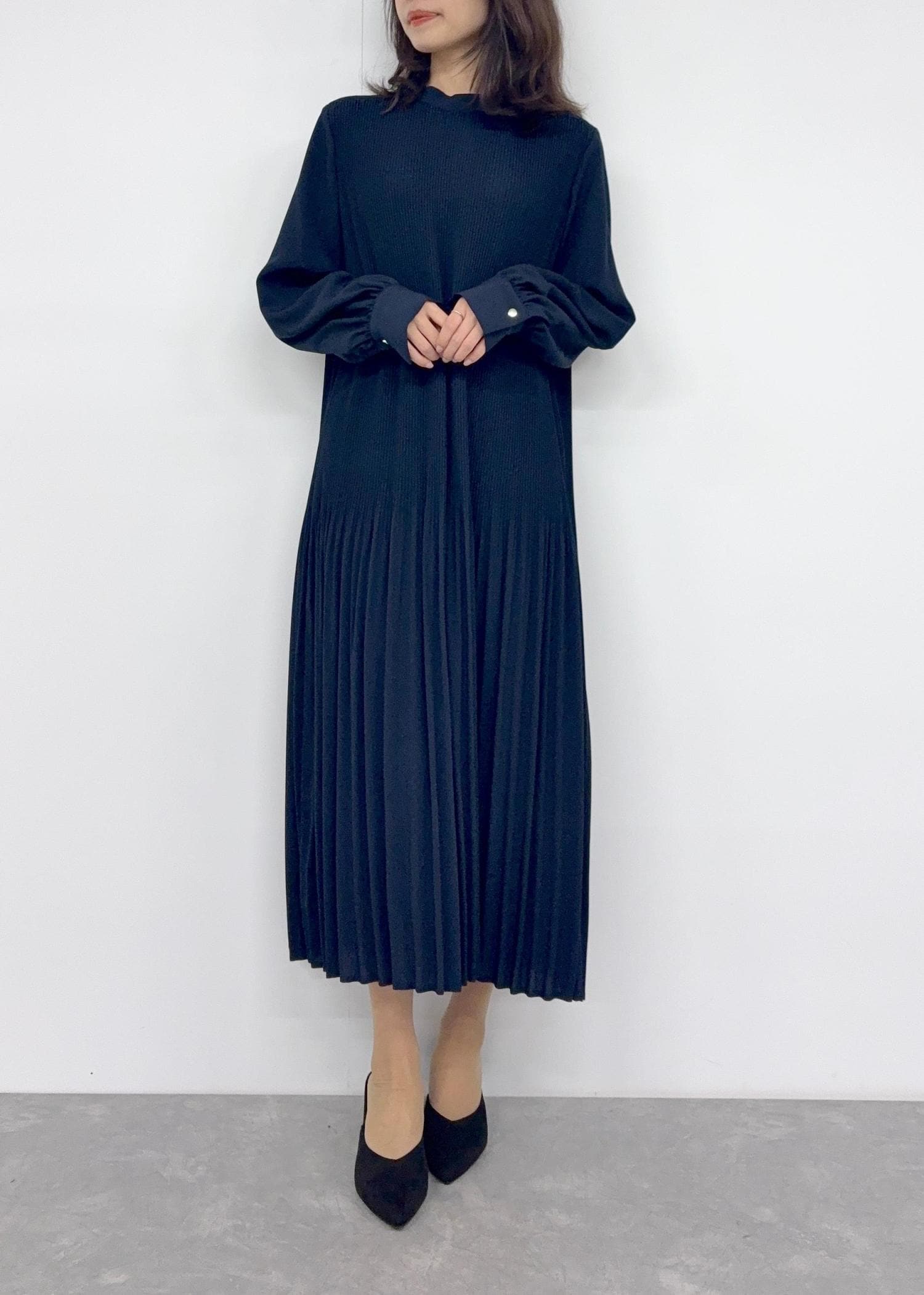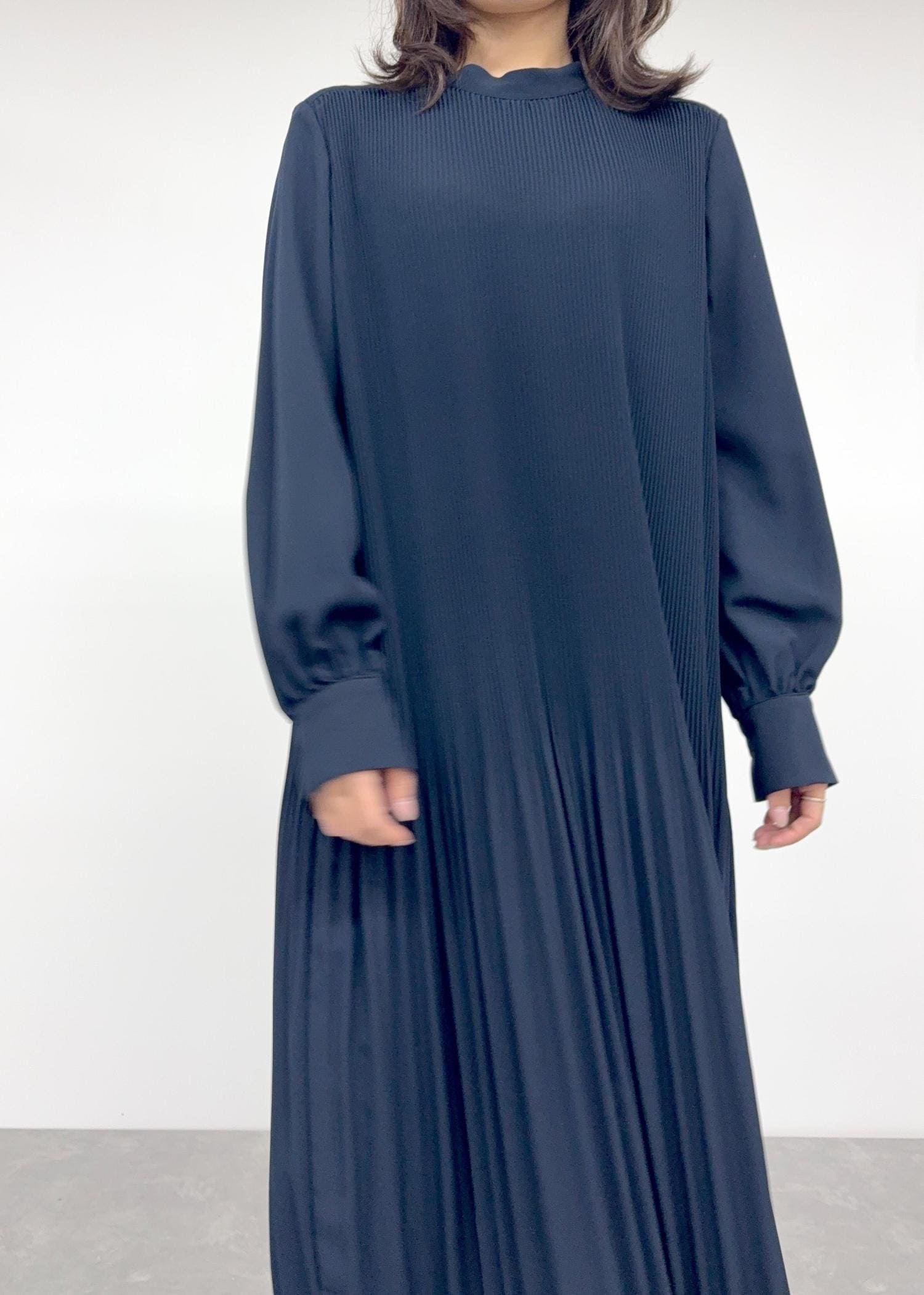 動くたび揺れるプリーツが繊細で可愛いワンピースです◯