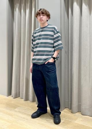 トレンド性の強いデザインで、深めの股上とワイドな腿廻りが特徴のカーブパンツシルエットのデニム。