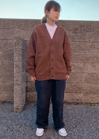 ざっくりとした網目が特徴の、ゆったりとした秋色のカーディガンです。