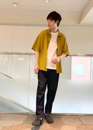 スラックスの場合はレザーシューズで締めてモードな雰囲気に仕上げ、カーゴパンツの場合はサンダルでスポーティ感を演出するなど、全体的なバランスを考え、スタイリングをすると良いです。