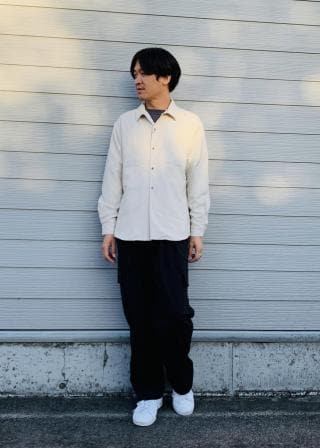 少し細めのスラックスパンツとも合い、綺麗めなスタイリングもおすすめです。ワイドイージーパンツと合わせたリラックスコーディネートで頑張りすぎないスタイルも今っぽく決まります。