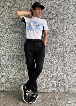 今シーズンを象徴する、グラフィティの様なストリート感のあるJUN&ROPEロゴをスプレーで描いた様な「エアブラシ」ロゴを大胆に表現。部分的にメッシュ素材にて切り替え、通気性を高めています。ボディの素材はUVカット、吸水速乾、高いストレッチ性のある高機能素材を使用。ストレスのない着心地で夏場のゴルフシーンに最適です。
