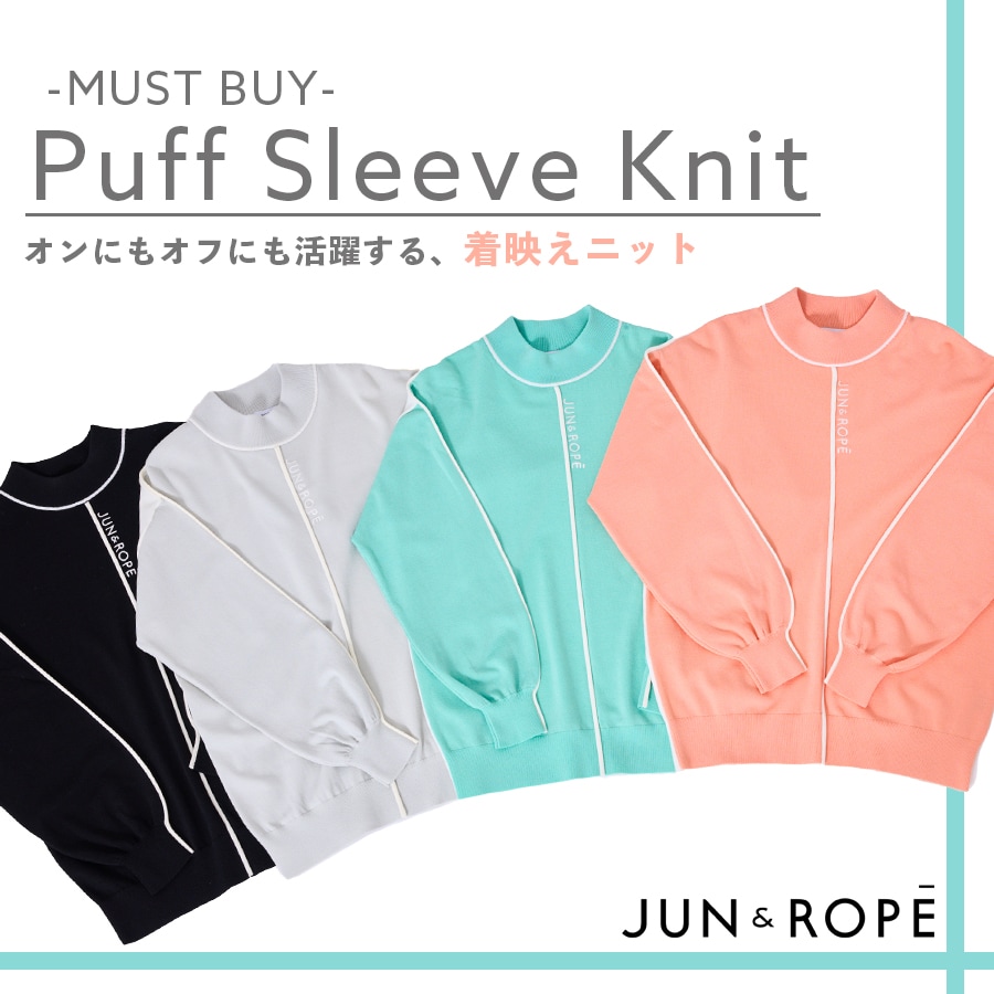 ライン使いパフスリーブ長袖ニット[一部WEB限定カラー]