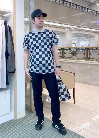 ・チェッカーボード衿バックプリント半袖ポロ(品番:ERM25150)
