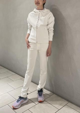 1枚あると便利なフーディーはポンチ素材なのでキレイめな印象でカジュアルすぎないのでパンツスタイルやフェミニンなスカートに合わせるのにちょうど良い!